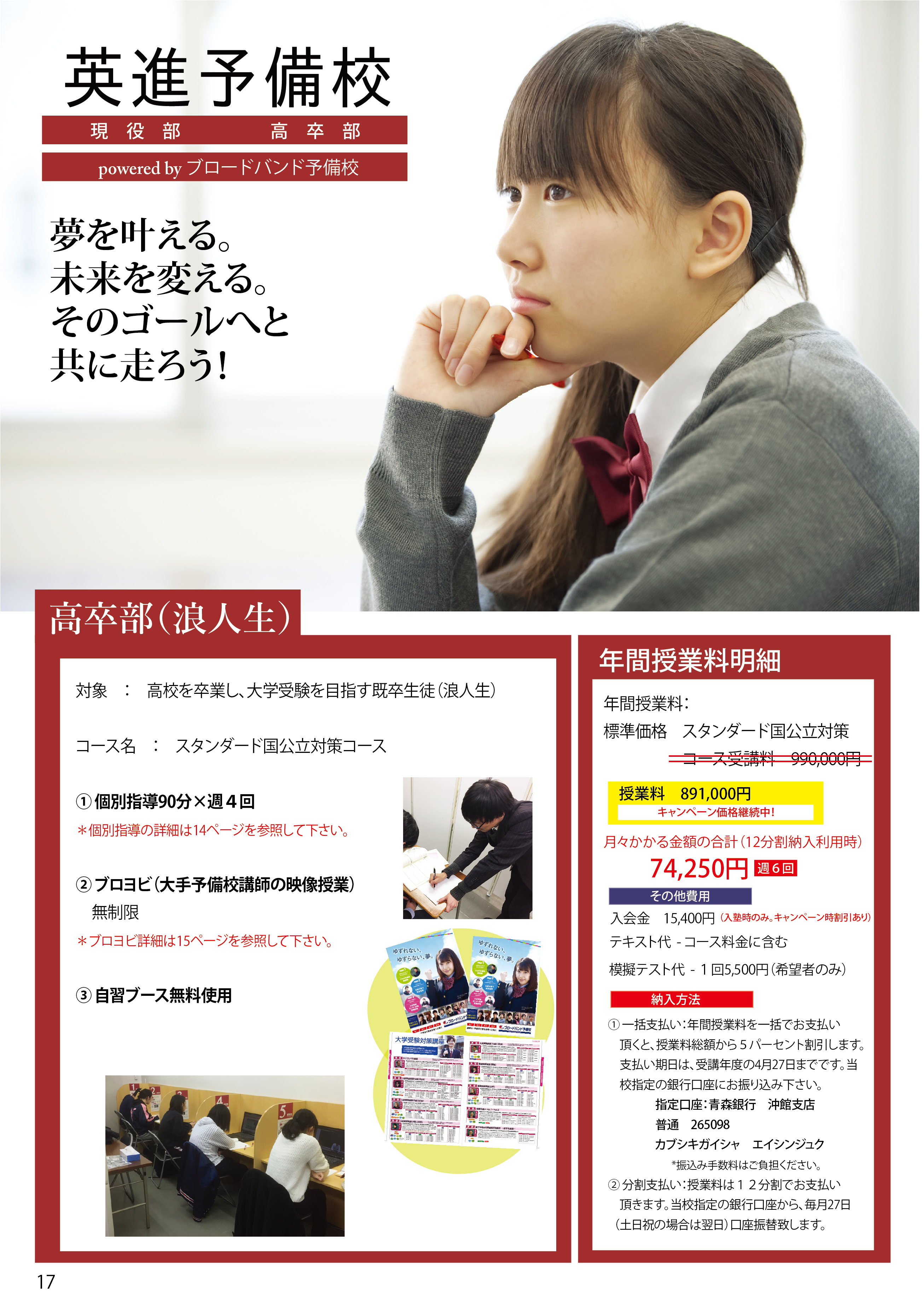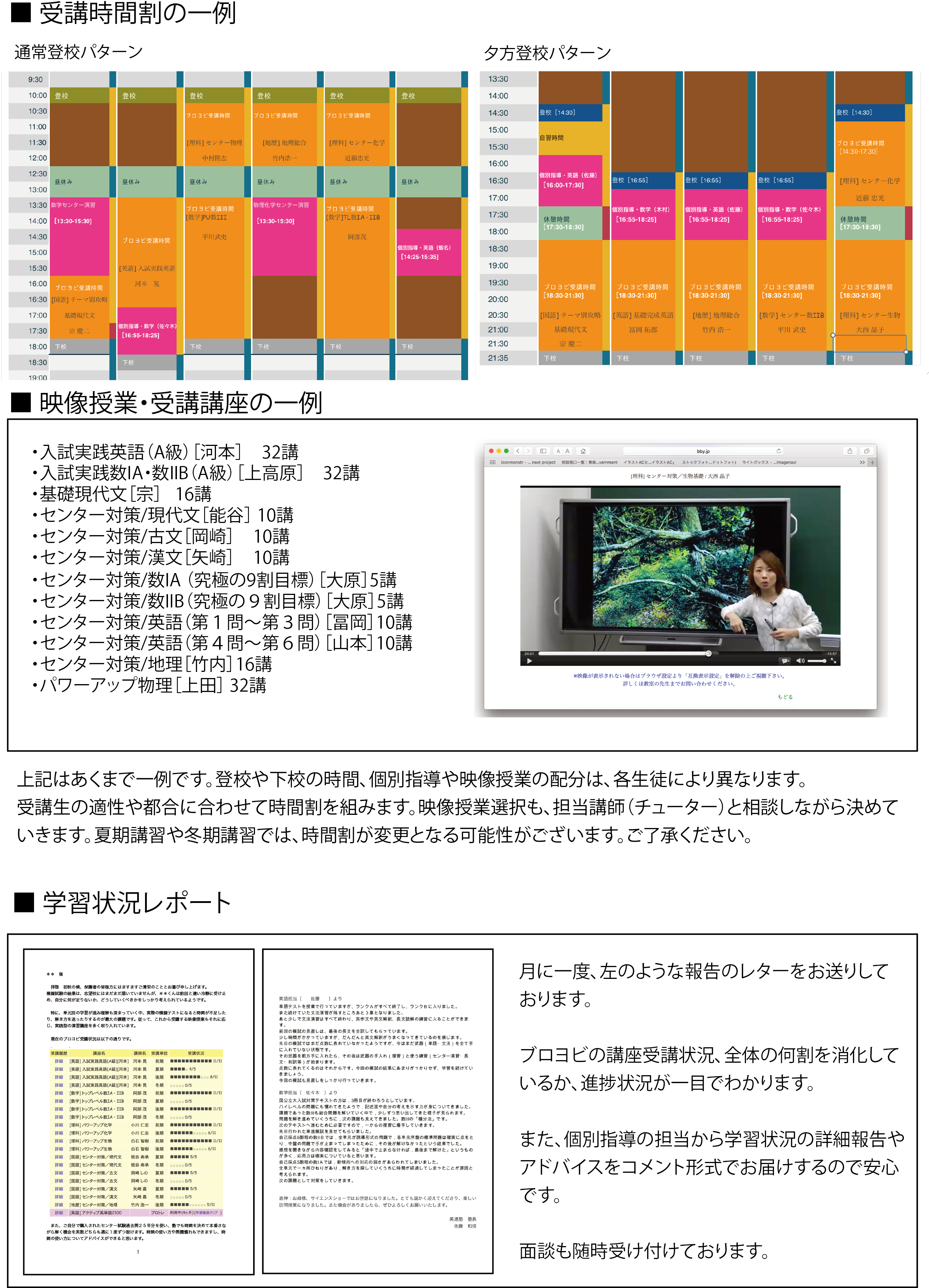 下記は、実際に英進予備校を受講した生徒の時間割です。